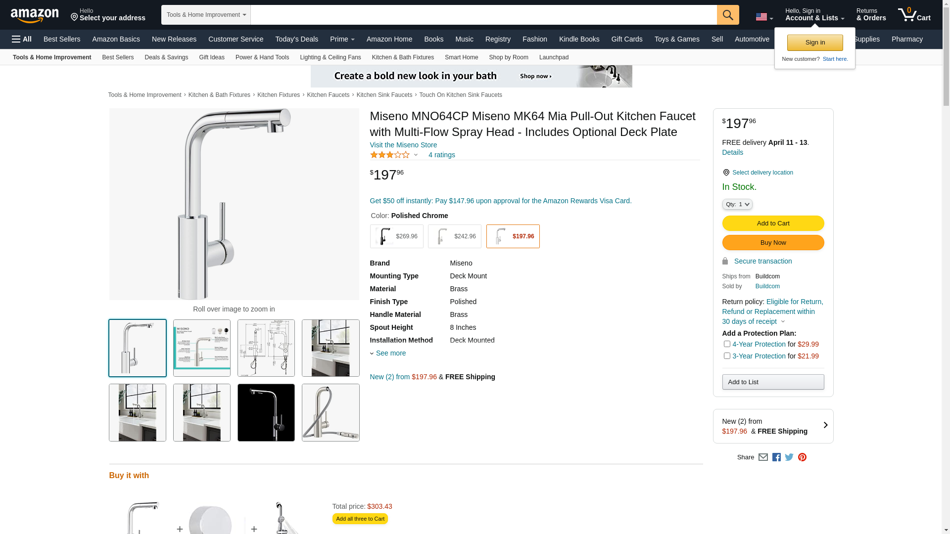 MK64 Construction: Faucet body constructed from solid brass The gold standard plumbing - brass is ultra durable as it is highly corrosion resistant and handles variable temperatures better than any other metal Drip-free ceramic disc mixing valve cartridge Premium finishes Reflective finishes are plated and brushed finishes use a process called Physical Vapor Deposition (PVD) - both of which are guaranteed to last a lifetime Integrated 20" braided supply lines The braiding adds flexibility and durability, while the integration into the faucet saves valuable installation time, as well as a trip to the hardware store MK64 Features: Faucet function and finish are covered under Miseno's limited lifetime Single hole installation Smooth single handle operation Pullout sprayer on a 24” hose provides increased versatility Sprayer features a rocker switch to move from an aerated stream to a powerful spray Spout swivels 360 degrees to cover the entire sink Faucet includes optional escutcheon plate to cover additional holes MK64 Codes and Standards: This faucet meets or exceeds the following codes/standards WaterSense IAPMO/cUPC NSF 61-9 NSF/ANSI 372 ADA MK64 Specifications: Height: 13-7/8” (mounting surface to highest part of faucet) Spout Height: 12-5/16” (mounting surface to spout outlet) Spout Reach: 7-3/8” (center of faucet body to center of spout outlet) Flow Rate: 1.8gallons-per-minute Faucet Holes: 1 Maximum Deck/Counter Thickness: 1-3/8” Deck Plate (Escutcheon) Width: 10-1/4”
