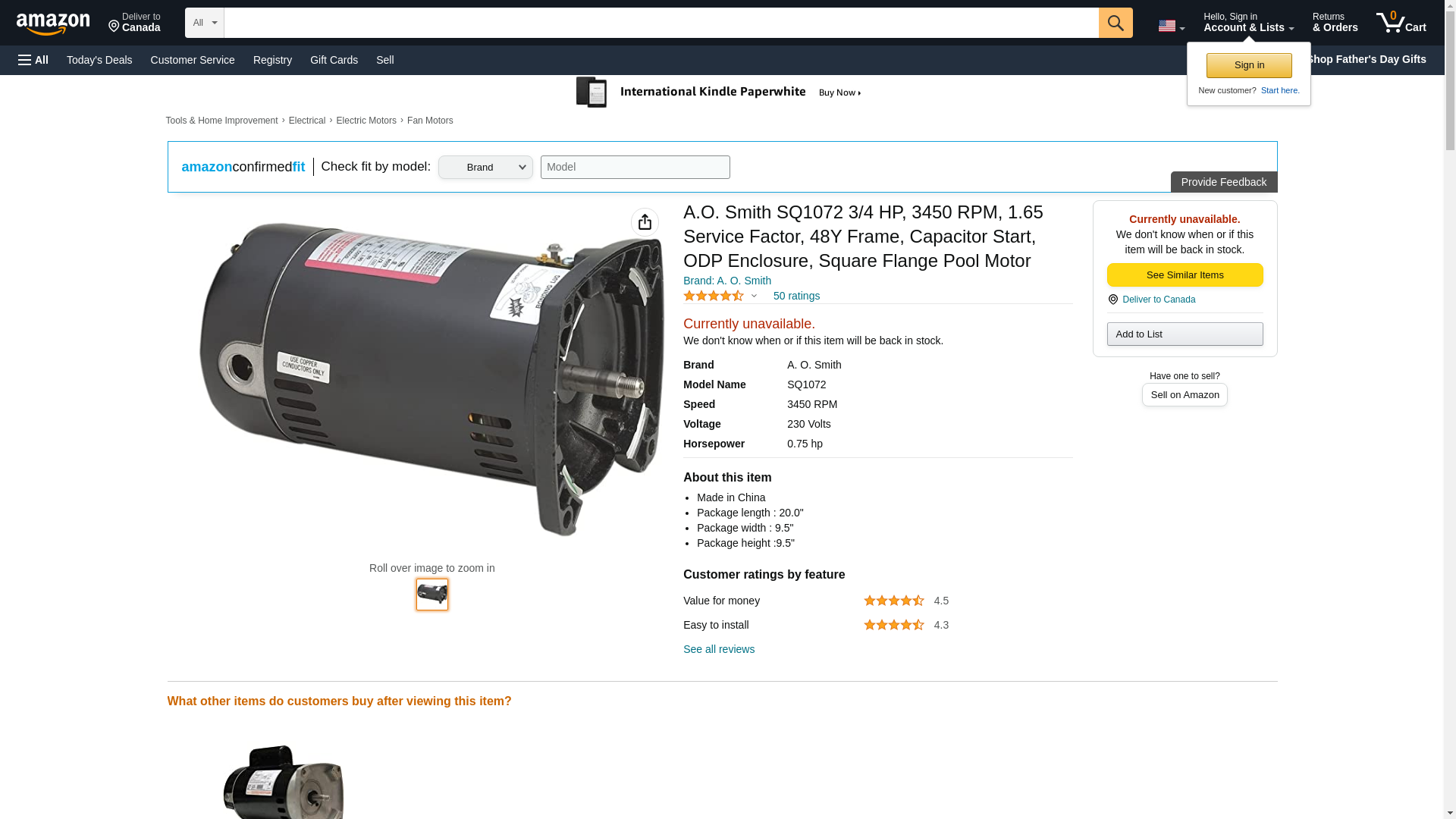 | Feature | Century Motors Square Flange Pool and Spa Pump Motor #SQ1072 |