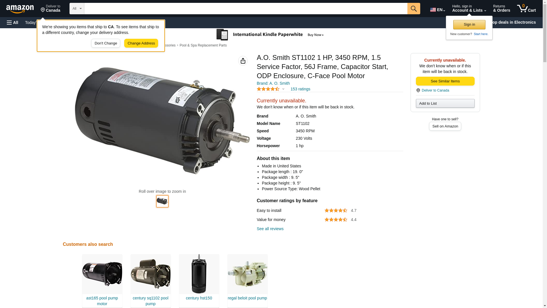 A.O. Smith ST1102 1HP 230/115V Pool Filter Motor