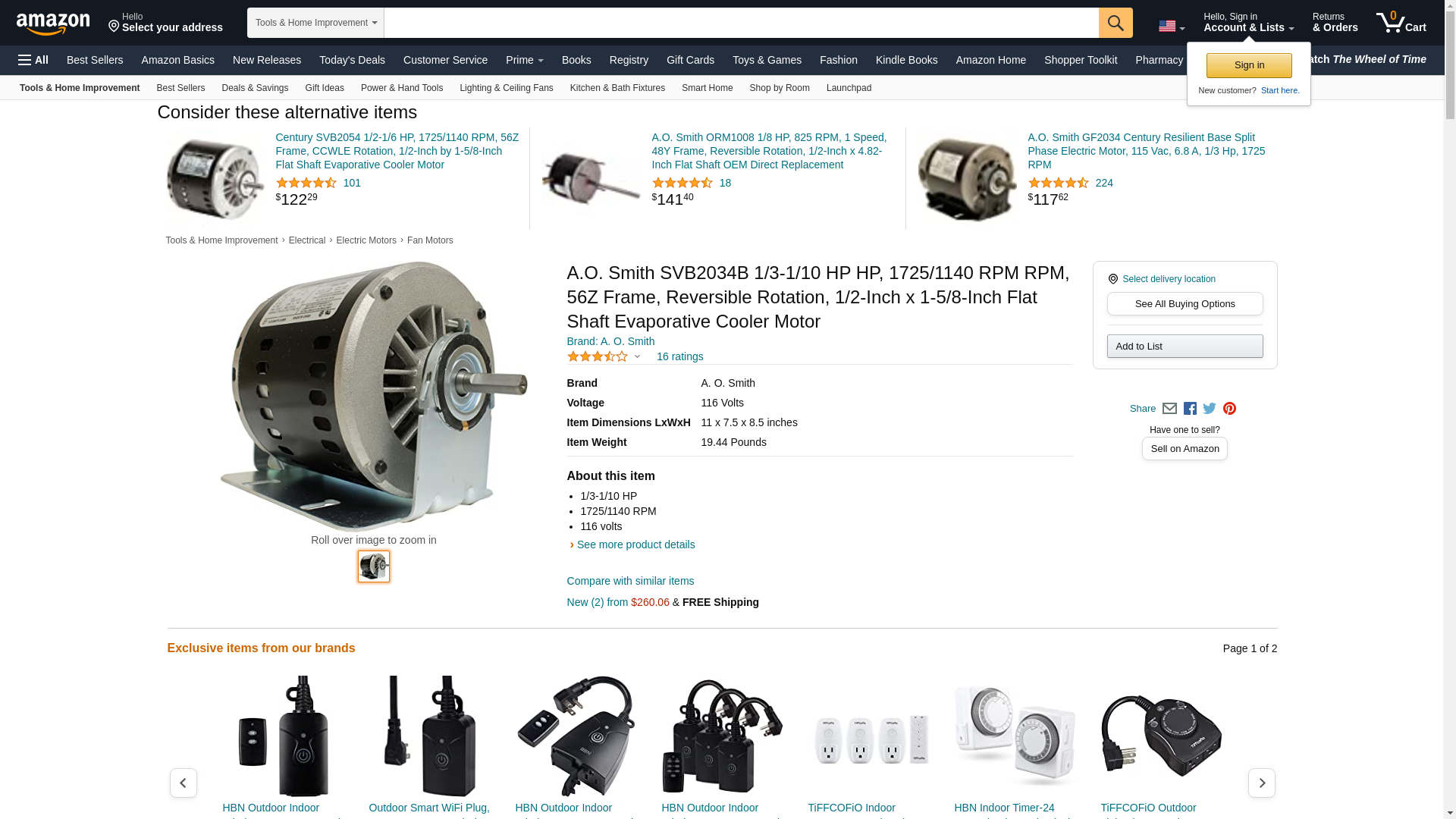 A.O. Smith SVB2034B 1/3-1/10 HP HP, 1725/1140 RPM RPM, 56Z Frame, Reversible Rotation, 1/2-Inch x 1-5/8-Inch Flat Shaft Evaporative Cooler Motor