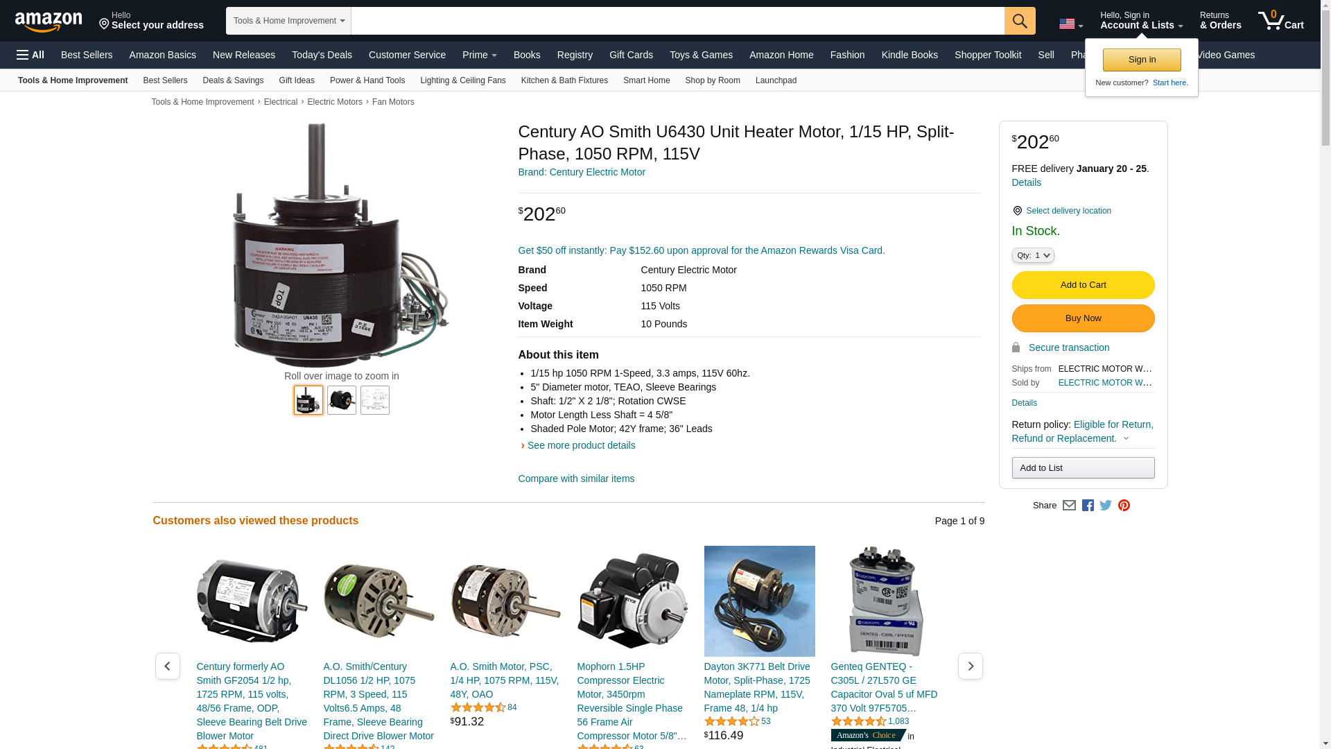 | Manufacturer | Century Electric/AO Smith Motors Co |