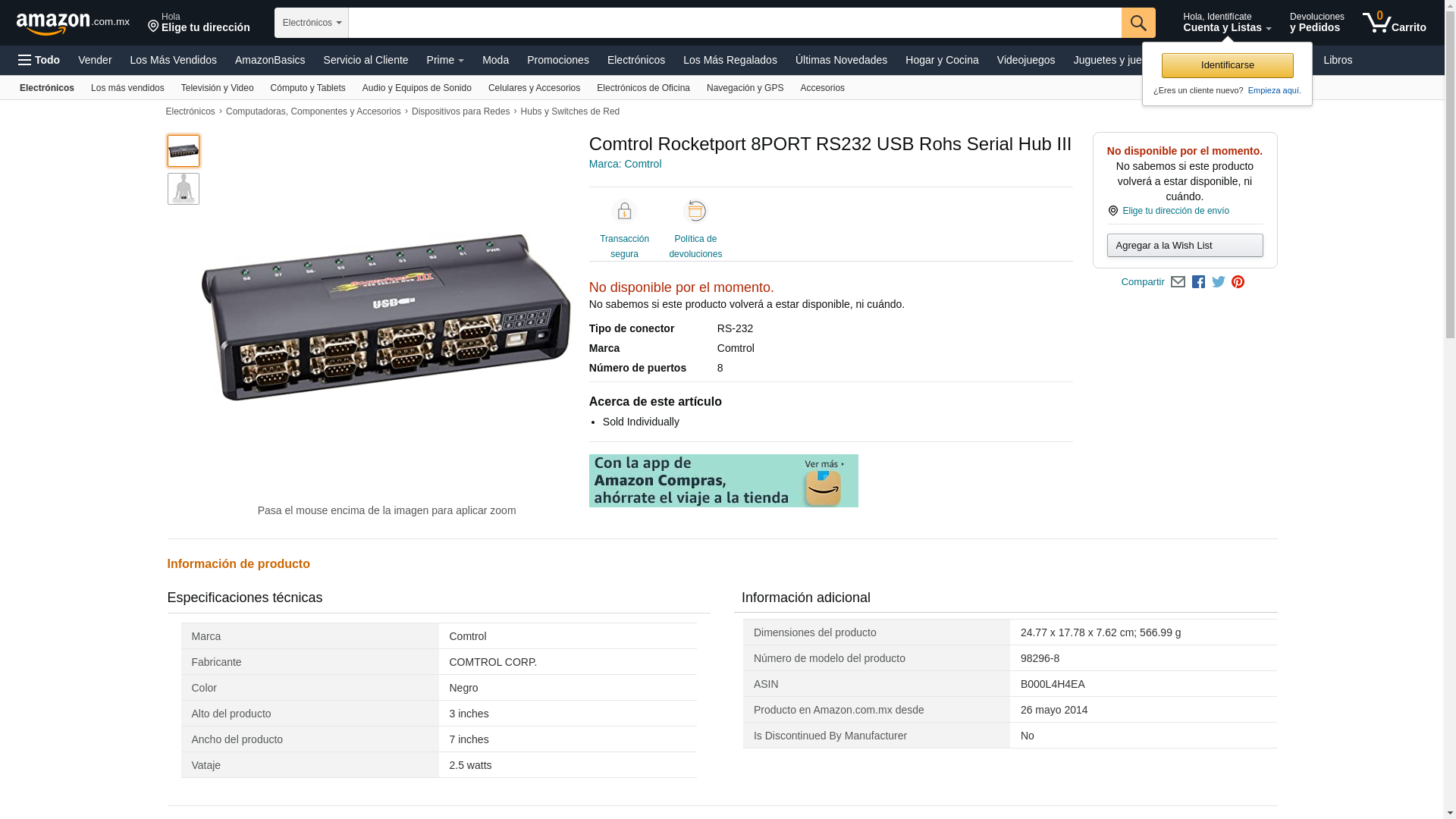 - Comtrol corp. - 98296-8 - rocketport 8port rs232 usb rohsserial hub iii