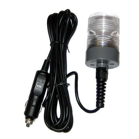 Mega Light UtilityMega-Light energy efficient lights consume very little current. At just 0.110 amps (approximately 1/10th amp), battery discharge is about one amp hour in a 12-hour period. Your batteries will hardly know its on.Mega-Light Utility features a light sensor that automatically switches on at dusk and off at dawn. It sports a dual-function Fresnel lens that projects light for up to two nautical miles (3.7 km).Comes with two easy-to-change light bulbs. One bayonet-type bulb draws just 0.110 amps and can be seen for up to two nautical miles (3.7 km). The other bayonet bulb draws 0.320 amps (approximately 3/10th amps) and is more than twice as bright. Includes a standard lighter plug and 15 foot (4.5 m) cord with easy hanger.