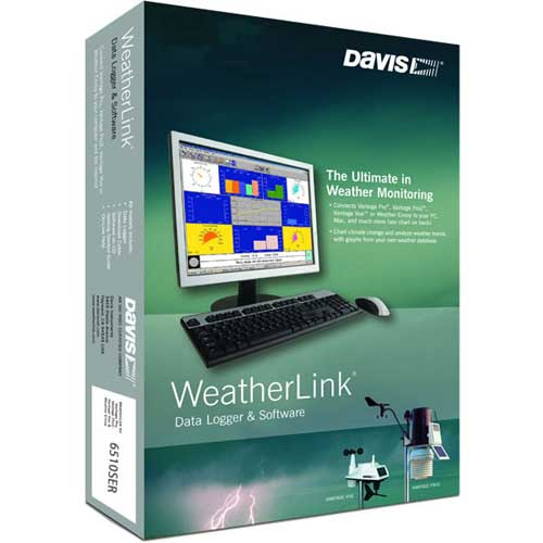 Add WeatherLink to your Vantage Vue or Vantage Pro2. The data logger fits neatly into the weather station console or Weather Envoy, storing weather data even when it's not connected to your PC. Add WeatherLink to any Vantage station or Weather Envoy and store weather data even when it's not connected to a computer. Later, download the data and use the software for detailed analysis and graphing. Our popular WeatherLink with standard data logger is ideal for most purposes, while other models add special features designed for specific user groups. Expanded Reporting More Weather Data. View weather information not available on the console, including heating degree days, cooling degree days, and fuel-oil demand. Optional Sensor Reporting. With optional UV and solar radiation sensors, get details on sunburn risk and solar energy. Moon Phase. With Vantage Pro2 and Vantage Vue, you can see the phase of the moon right on the console. But now even Perception and Weather Wizard III owners can view the phases of the moon using WeatherLink. Sharing Your Weather Data Create Your Own Reports. Data can be exported to most popular spreadsheets, databases, and word processing programs. Weather Website. Create a weather website or post weather conditions to a LAN. Add graphs, text lines, or scrolling ticker tapes, and upload other files (such as webcam images) along with weather data. Weather World 'Round. Citizen Weather Observer Program. Submit your data to the National Weather Service to help develop improved weather prediction models. The GLOBE Program. Participate with other schools in an international weather-related program for students from elementary through high school. What's included: software on CD, data logger and cable to connect the data logger to your computer. Add Extra User License Kits for additional computers. Download and pull up data right on your PC WeatherLink® software with data logger allows you to graph, analyze and