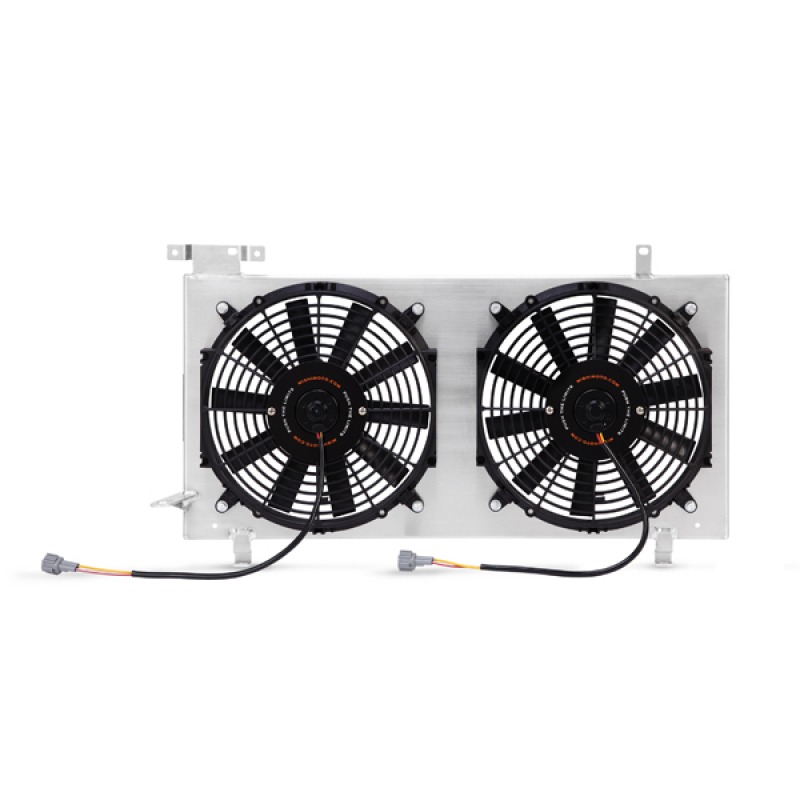 - Includes aluminum fan shroud and two 12" slim electric fans