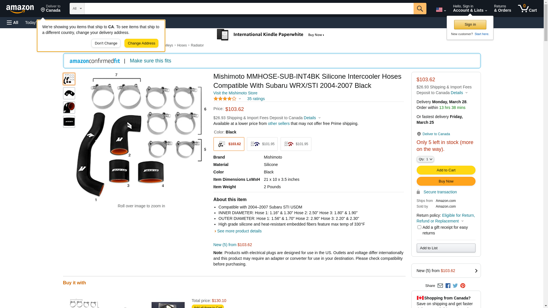 ![]() automotivestuff.com | MISHIMOTO-MMHOSE-SUB-INT4BK | 1 | -2 | 1 | 1 @ $116.95 |