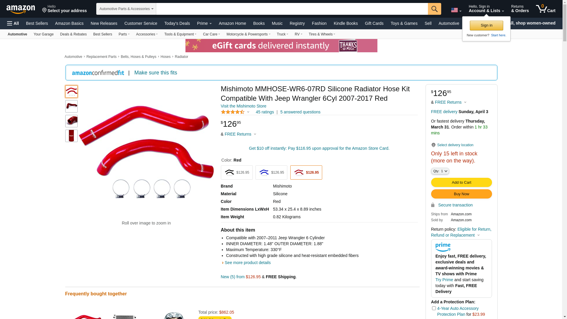 ![]() automotivestuff.com | MISHIMOTO-MMHOSE-WR6-07RD | 1 | -2 | 1 | 1 @ $141.60 |