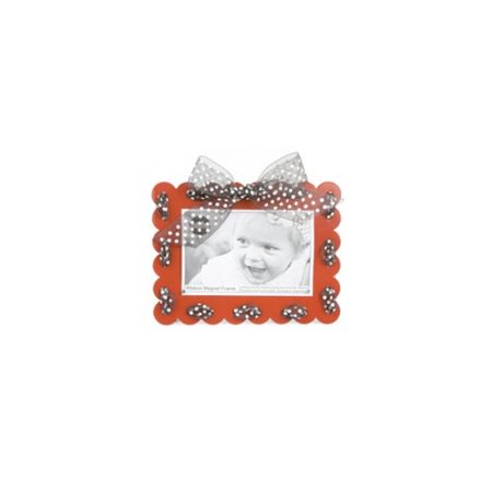 MISH1097 <br /> <b>Features</b> <br /> <ul> <li>Creates a unique and personalize way to show photos and important to dos.</li> <li>Comes with a fold out leg</li> <li>Able to add ribbon to holes</li> <li>Set includes 4 plain mighty magnets</li> <li>Style (Old): Glam</li> <li>Material: Metal</li> <li>Picture Size: 4" x 6"</li> <li>Picture Capacity: 1</li> </ul> <br /> <b>Dimensions</b> <br /> <ul> <li>Overall Product Weight: 1 lbs</li> <li>Overall Height - Top to Bottom: 6.5"</li> <li>Overall Width - Side to Side: 8.5"</li> <li>Overall Depth - Front to Back: 0.2"</li> </ul>