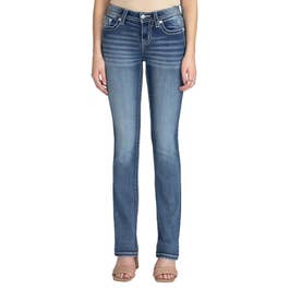 Miss Me Women's Embroidered Criss Cross Flap Pocket Straight Leg Jeans