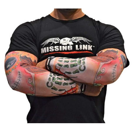 Drawn by Joshua Pierce exclusively for Missing Link this design features beautiful artwork in soft skin tones and bright pinks. ALL OF OUR ARMPRO COMPRESSION SLEEVES HAVE AN SPF 50 RATING!!! They are made from a high quality 4-way stretch Lycra, offering superior moisture wicking that provides a cooling effect while riding. To increase the cooling effect on really hot days, just wet them down with water. Protect your arms and your ink from the harmful effects of the sun and stay cool with these muscle compression sleeves featuring stunning tattoo designs as well as an array of solid colors. Sold in Pairs. <p></p> <ul> <li>Made from high tech moisture wicking Lycra that acts as cooling system when riding</li> <li>4-way stretch fabric provides compression to help prevent muscle fatigue</li> <li>Can be worn wet to enhance cooling effect</li> <li>Non-slip silicone gripper at bicep</li> <li>Many unique, stunning</li> </ul>