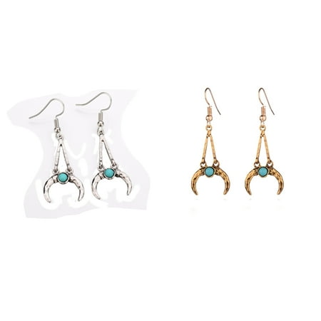 Pending Moon Drop Earrings Gold and Silver 2 Pair Set Tarnish Resistant, J-15