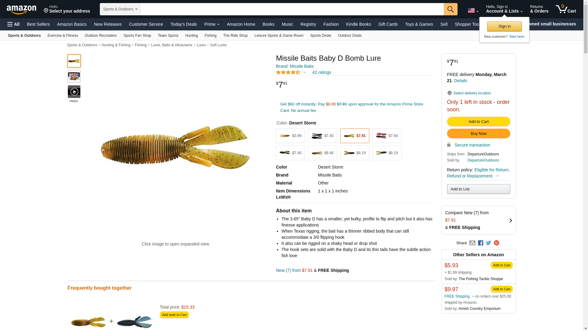 Missile Baits Baby D Bomb Lure, Desert Storm