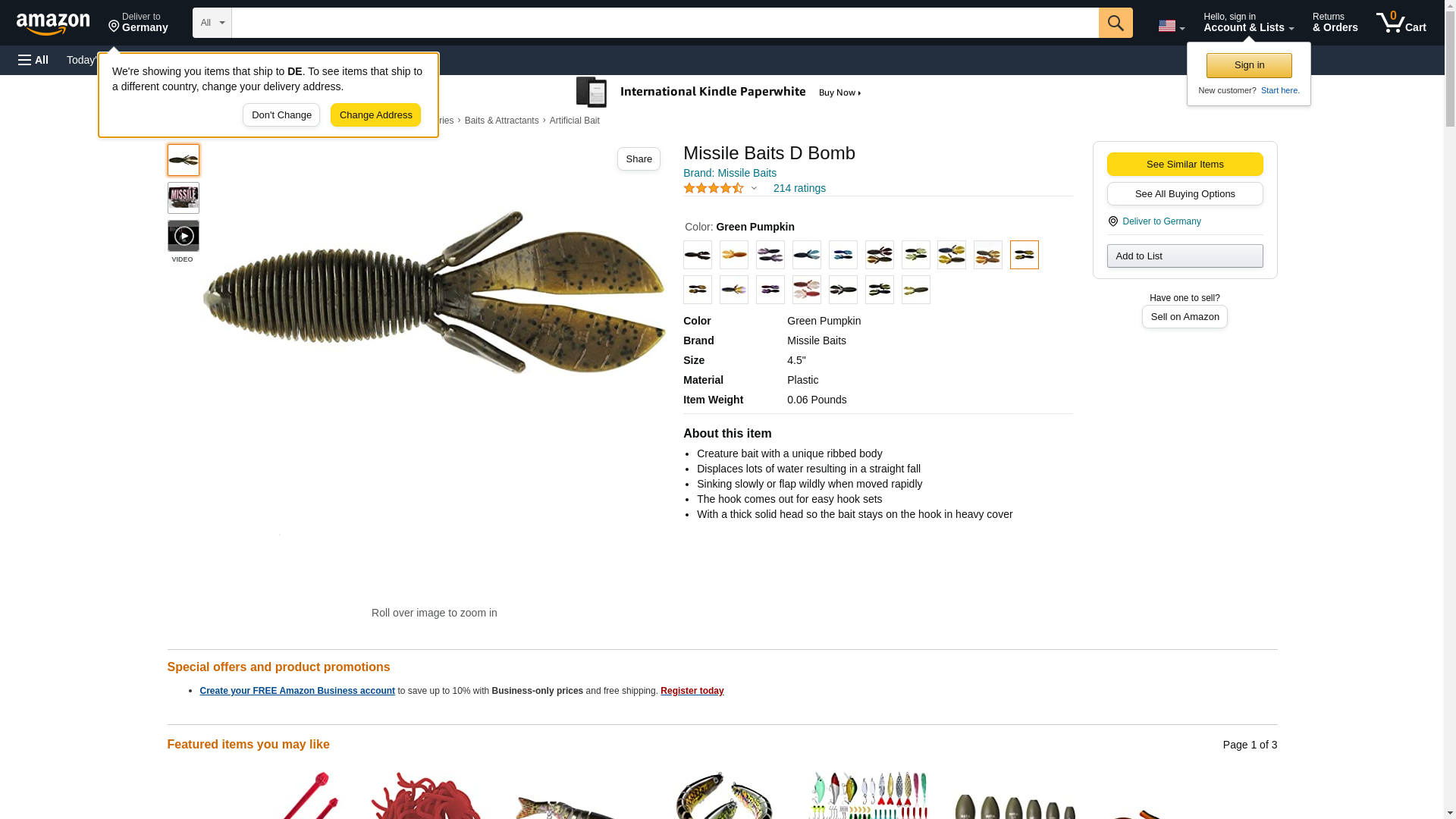 Missile Baits D Bomb, Green Pumpkin , 4.5"