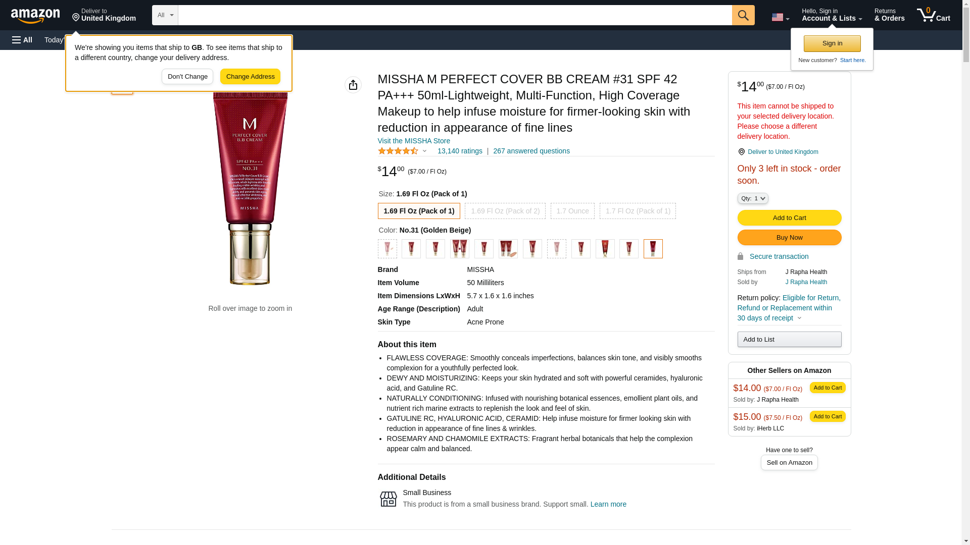 MISSHA M PERFECT COVER BB CREAM #31 SPF 42 PA+++ 50ml-Lightweight, Multi-Function, High Coverage Makeup to help infuse moisture for firmer-looking skin with reduction in appearance of fine lines: Maxedbuy.com