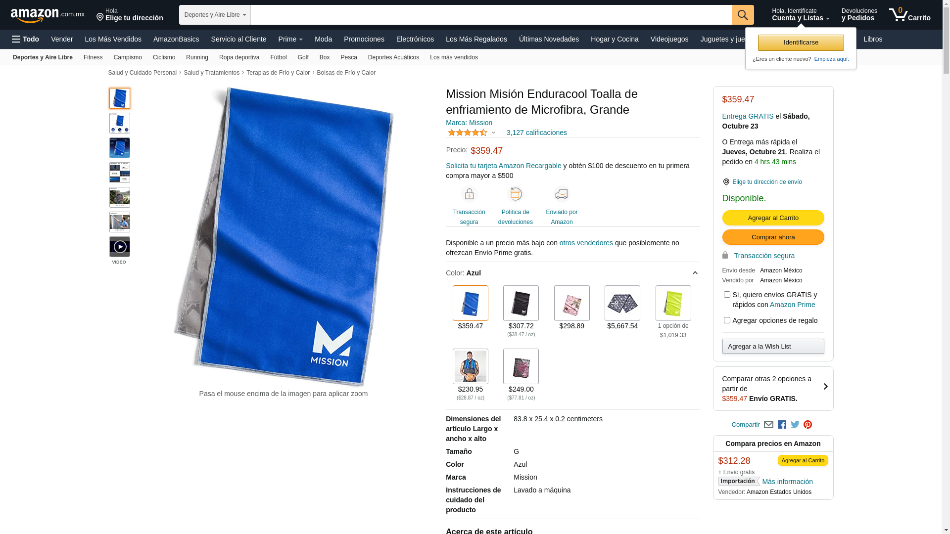 MISSION Original Microfiber Cooling Towel for The Gym, Yoga, Golf, and More (Mission Blue)