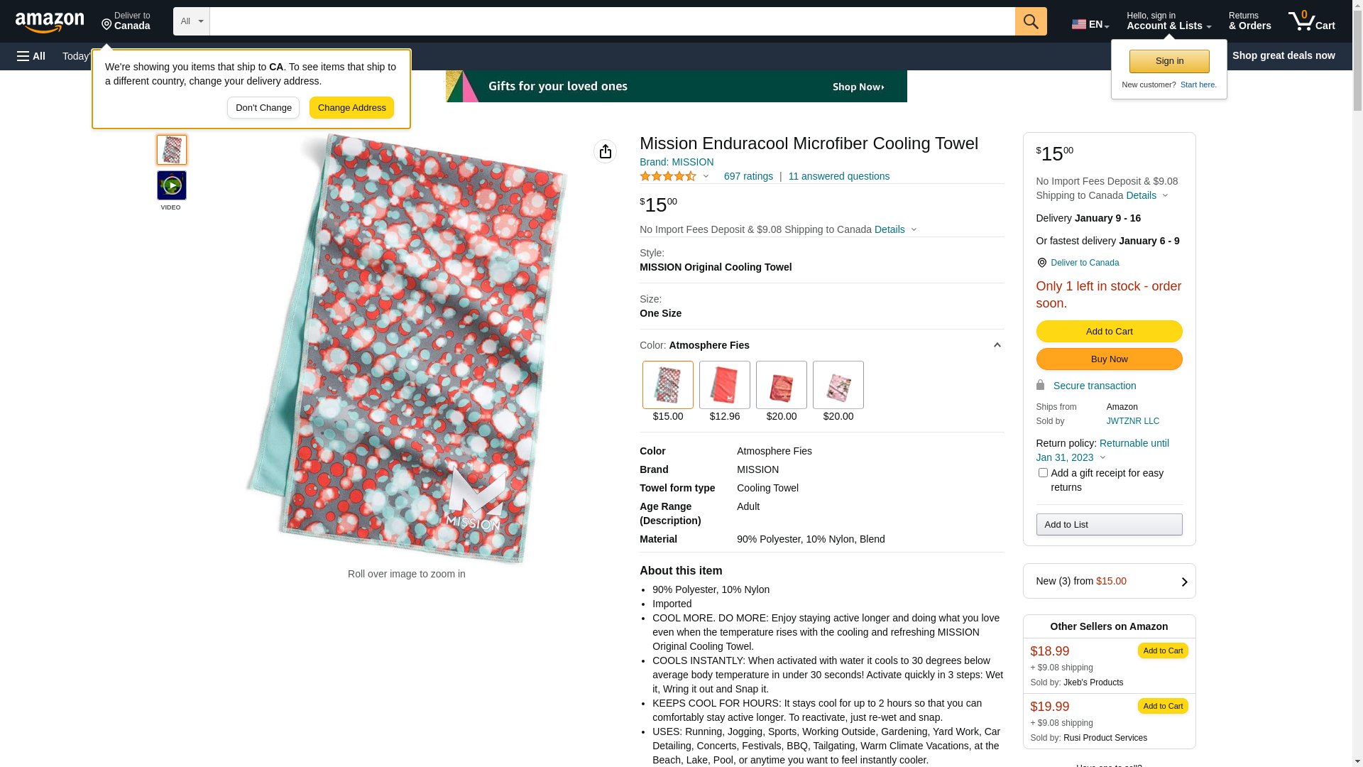 | Feature | Proprietary technology cools to 30 degrees below average body temperature when wet |