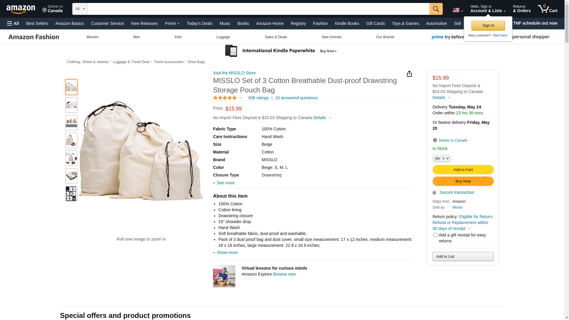 MISSLO Set of 3 Cotton Breathable Dust-proof Drawstring Storage Pouch Bag: Maxedbuy.com