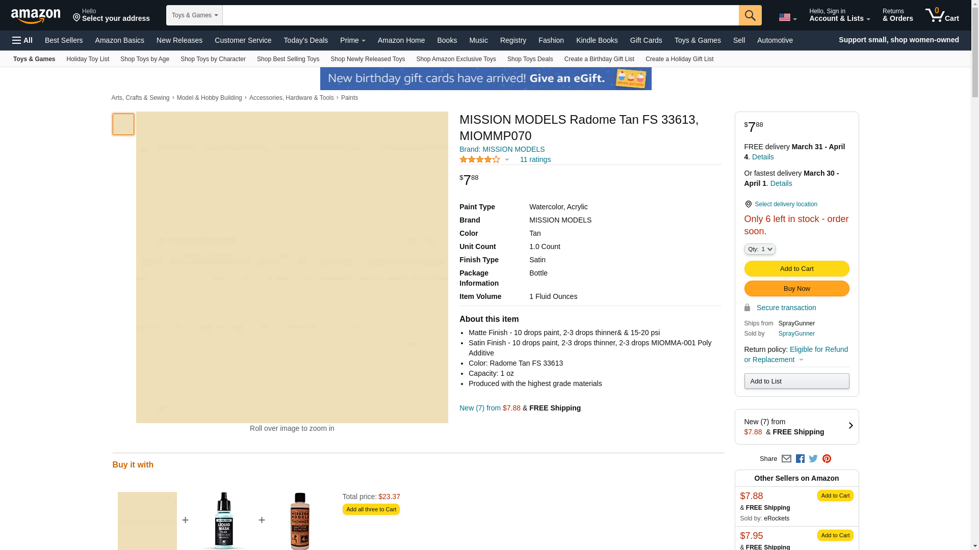Mission Models Radome Tan FS#33613, MMP-070 1oz.