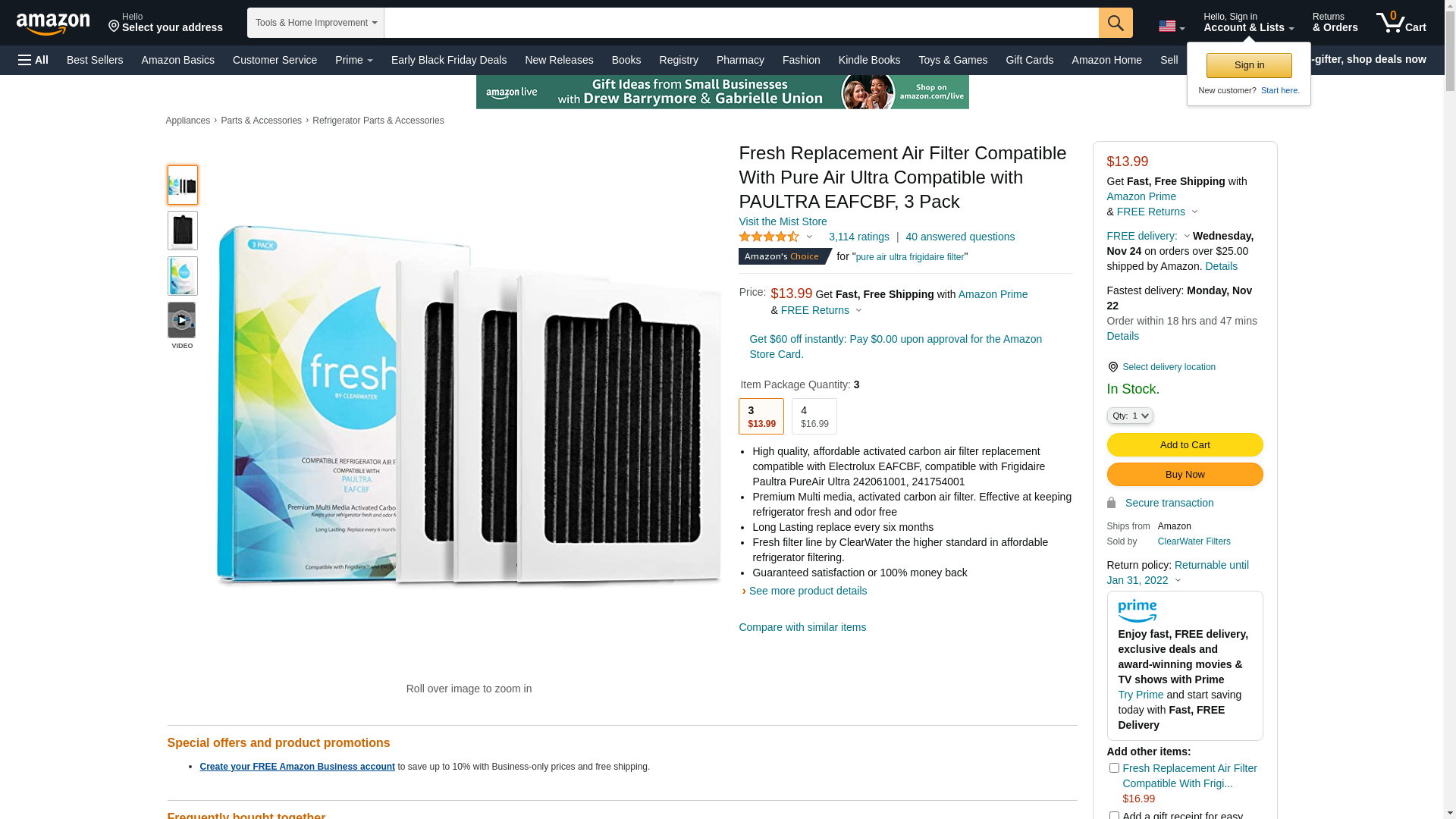 Fresh Replacement Frigidaire Pure Air Ultra PAULTRA Electrolux EAFCBF Air Filter, 3 Pack