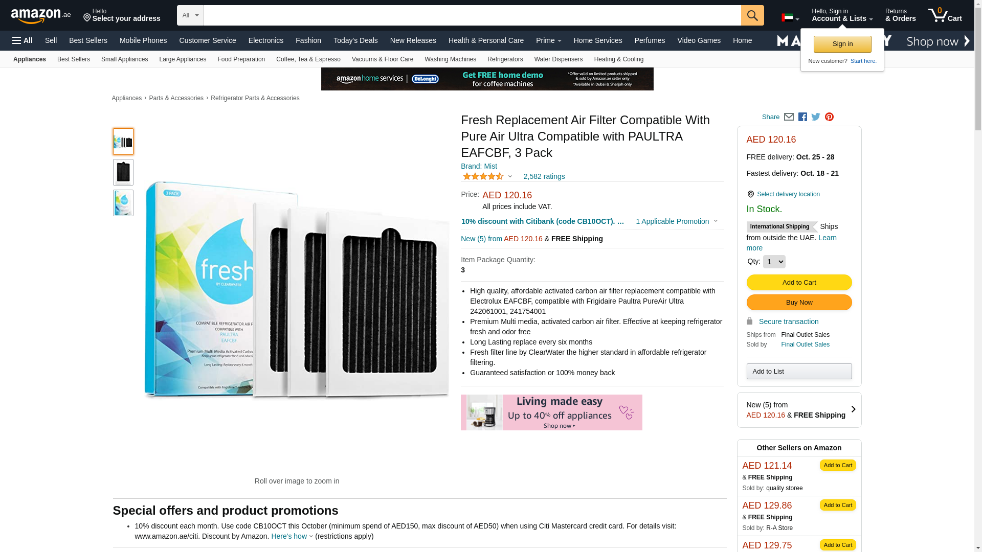 Fresh Replacement Air Filter Compatible With Frigidaire Pure Air Ultra PAULTRA EAFCBF, 3 Pack: Maxedbuy.com