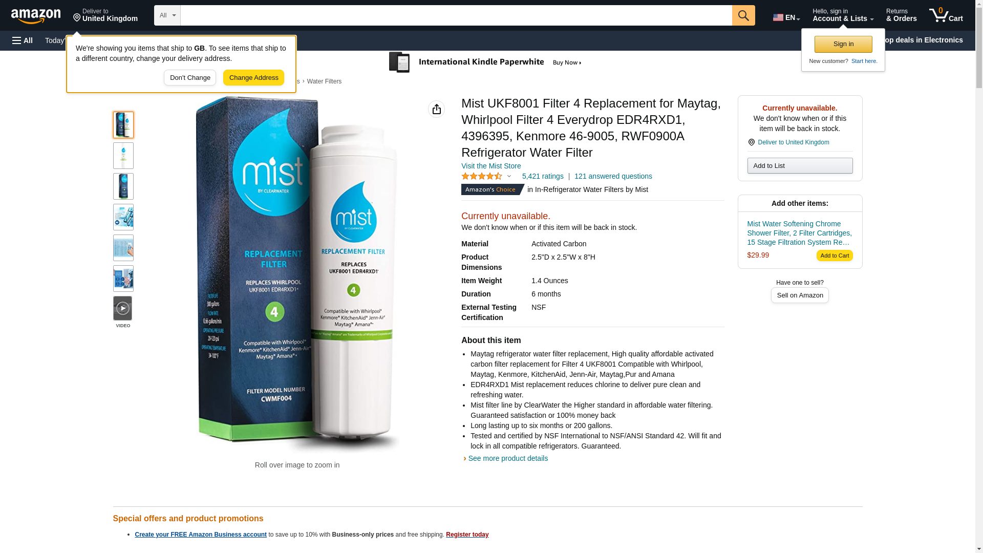 Mist UKF8001 Replacement For Whirlpool Maytag, 4396395, EDR4RXD1, Pur Filter 4, Kenmore 46-9005, Refrigerator Water Filter: Maxedbuy.com