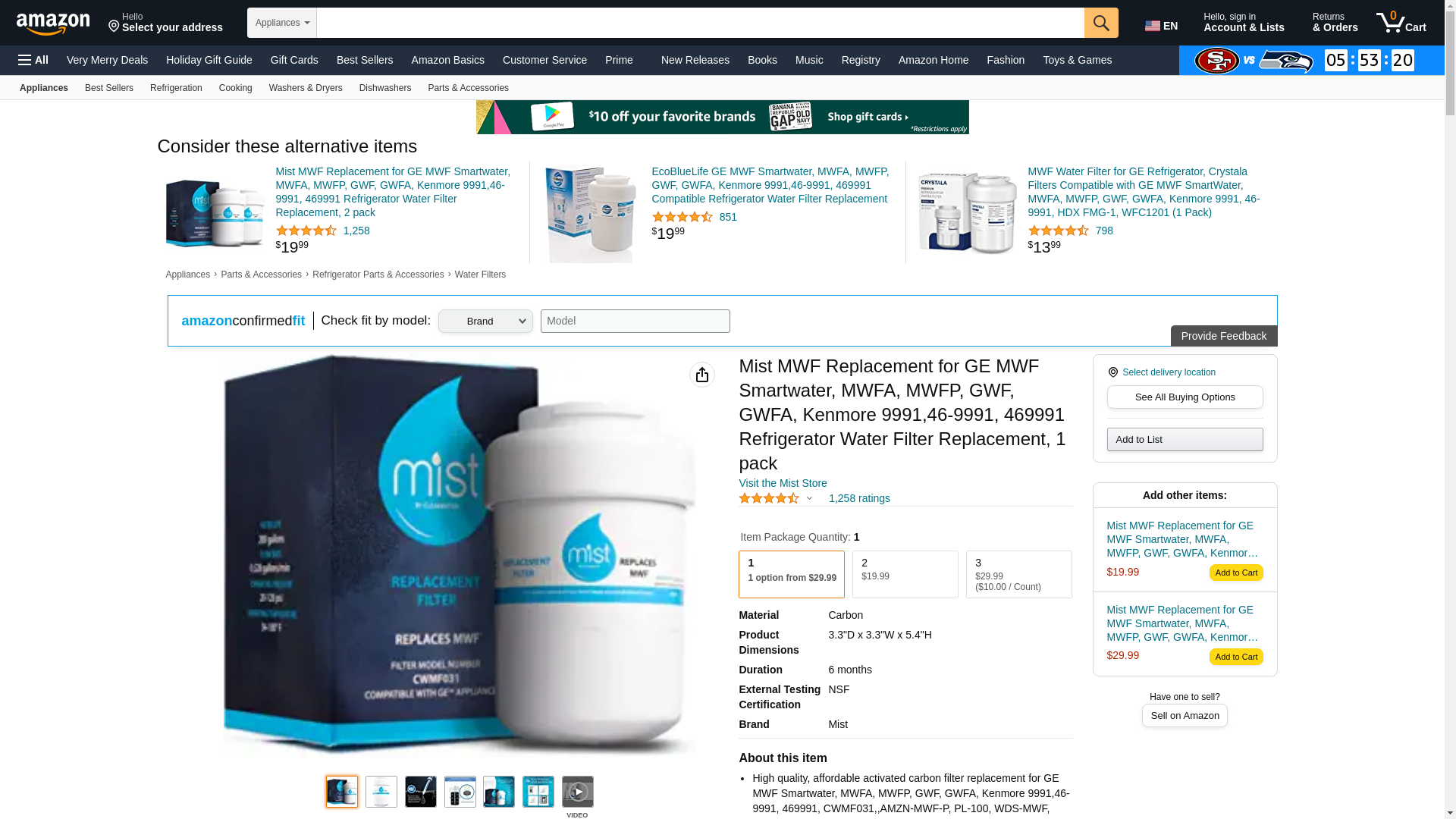Mist MWF Replacement For GE MWF Smartwater, MWFA, MWFP, GWF, GWFA, Kenmore 9991,46-9991, 469991 Refrigerator Water Filter Replacement 3 Pack: Maxedbuy.com