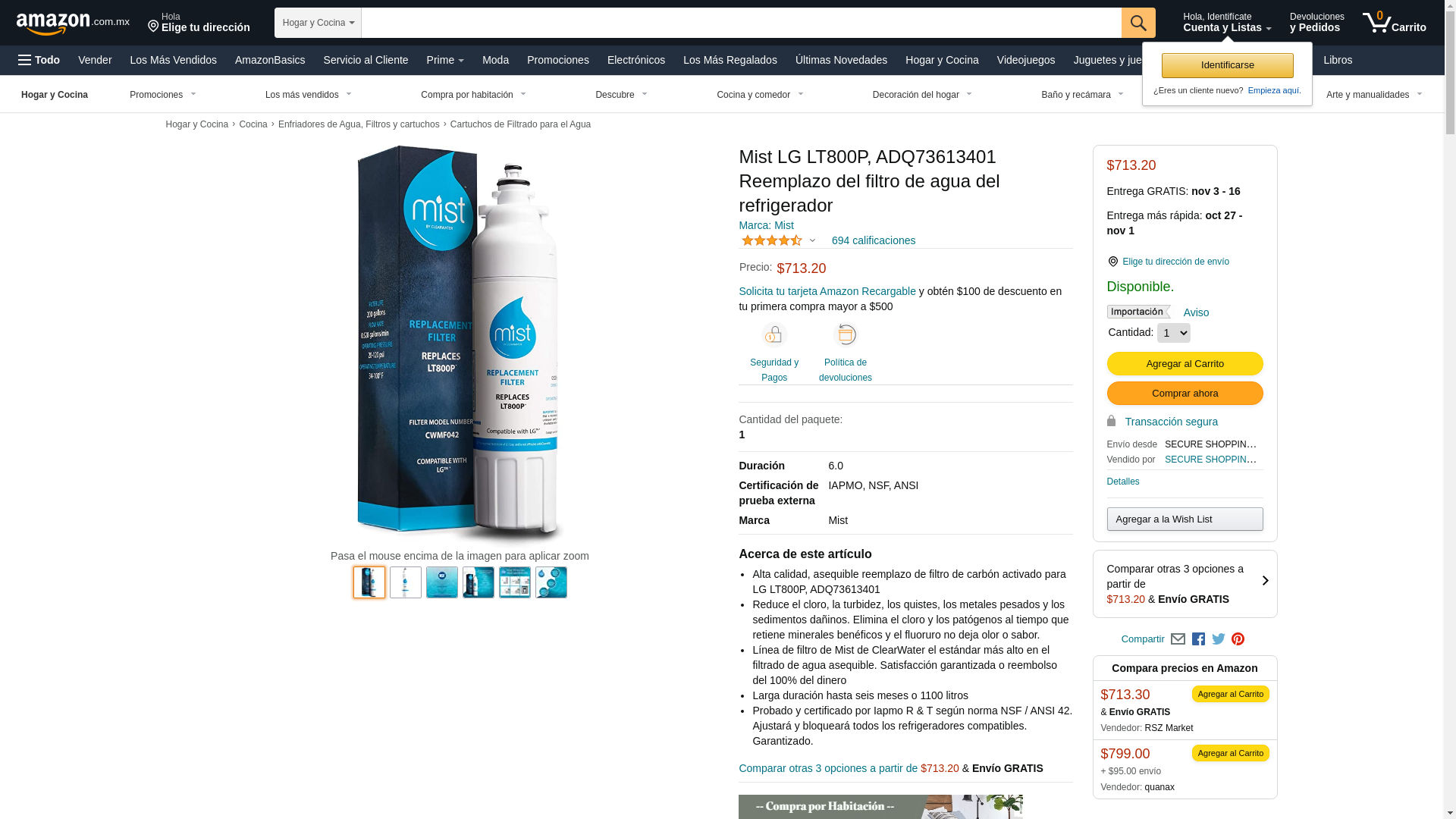 <p><strong>Tested and certified by the IAPMO R&T. </strong>Mist by Clearwater filter CWMF042 meets NSF/ANSI 42 & NSF/ANSI 372 standards</p> <p>for reduction of lead content and removal of contaminants such as chlorine, taste and odor, and particulates.</p> <p>This high flow rate filter delivers clean, clear water that looks and tastes great. <br /><br />Compatible to</p> <p><strong>LG Part:</strong></p> <p>LT800P LT800PC ADQ73613401 ADQ73613401-s</p> <p><strong>Kenmore Elite Part:</strong></p> <p>9490 ADQ73613402 46-9490 r-9490 4 69490 04609490000P adq73613402-s</p> <p><br /><br /><strong>For LG Refrigerators: </strong></p> <p>LMXS30776S LMXS30746S LMXC24746S LSC22991ST LSXS26466S LSXS26366S</p> <p>LSXS26326S LSXS26326W LSXS26326B LSXS22423S LSXS22423W LSXS22423B</p>