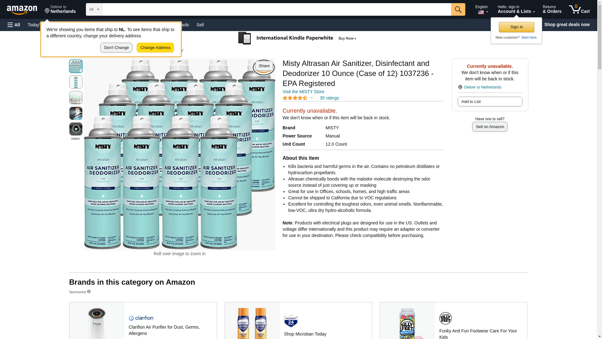 Misty Handheld Air Sanitizer/Deodorizer, Fresh Linen, 10oz, Aerosol, 12/Carton