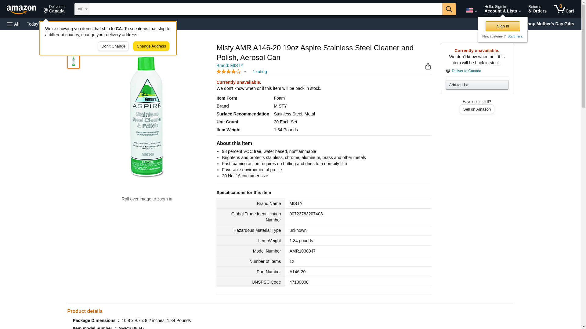Misty Aspire Stainless Steel Cleaner & Polish, Lemon Scent, 16 oz. Aerosol Can - 12 cans.