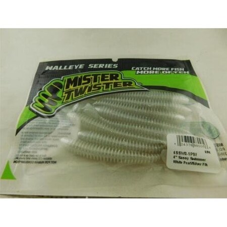 Mister Twister 4SSW8-1PSF 4" Sassy Swimmer 8/PK White Pearl/Silver