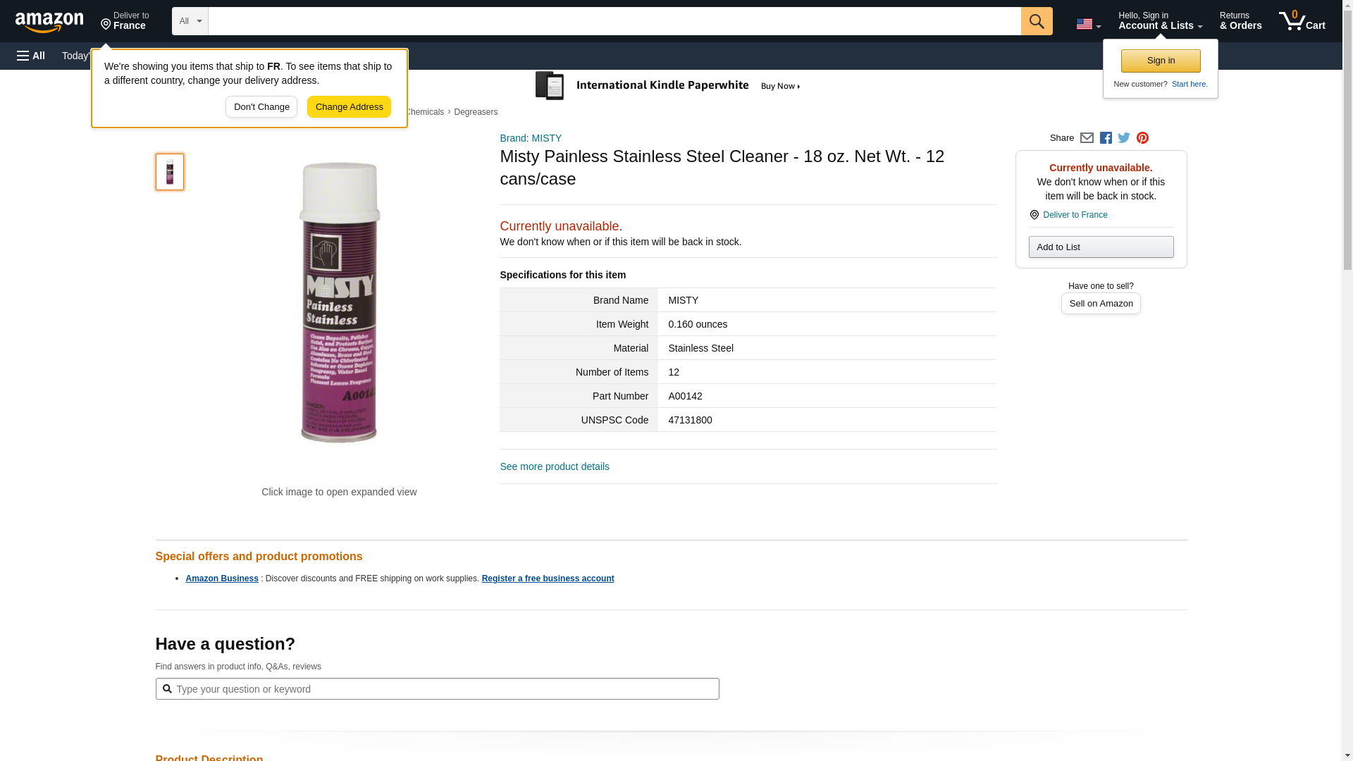 Misty Painless Stainless Steel Cleaner - 18 oz. Net Wt. - 12 cans/case
