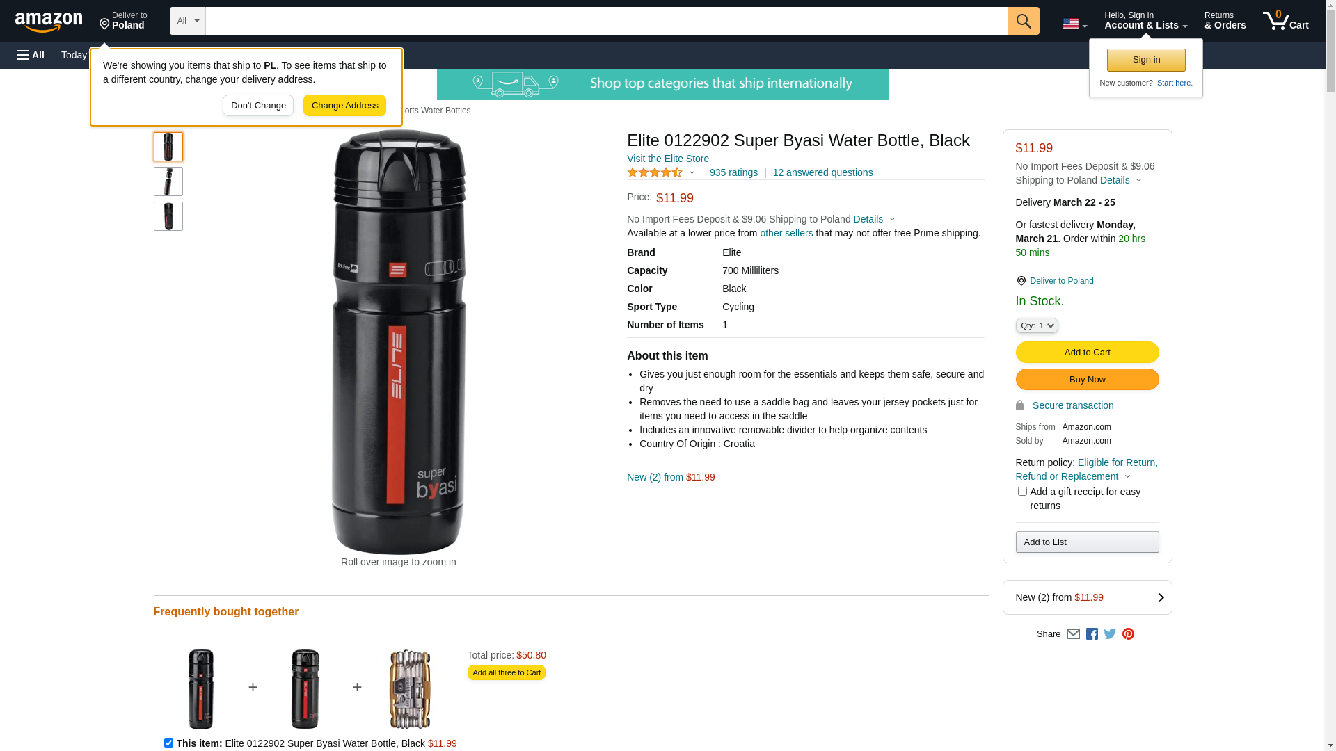 Elite 0122902 Super Byasi Water Bottle, Black