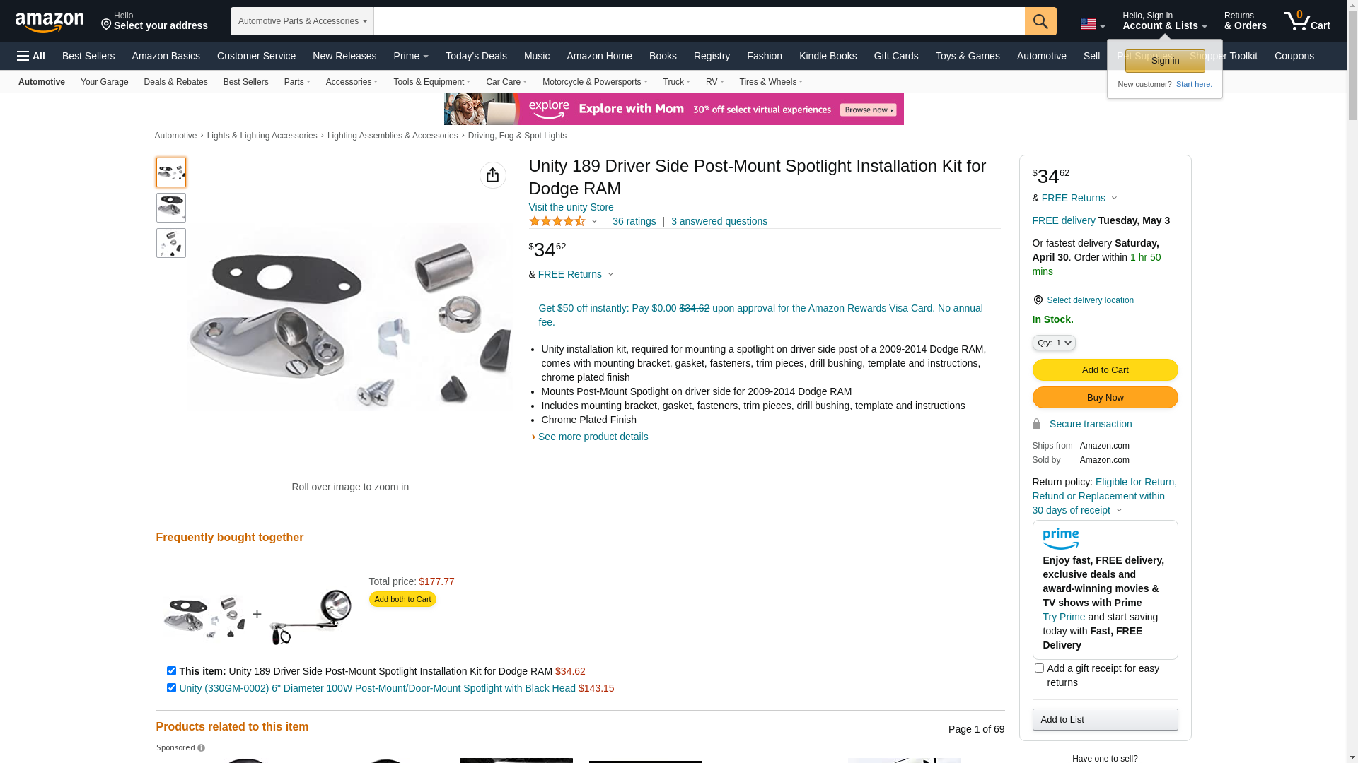 - Unity installation kit, required for mounting a spotlight on driver side post of a 2009-2014 Dodge RAM, comes with mounting bracket, gasket, fasteners, trim pieces, drill bushing, template and instructions, chrome plated finish