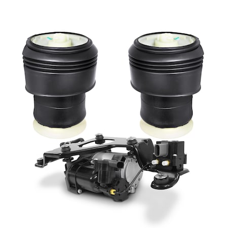 - Includes Both Rear Driver and Passenger Side Air Suspension Springs and Air Suspension Compressor Pump with Full Cage and Brackets