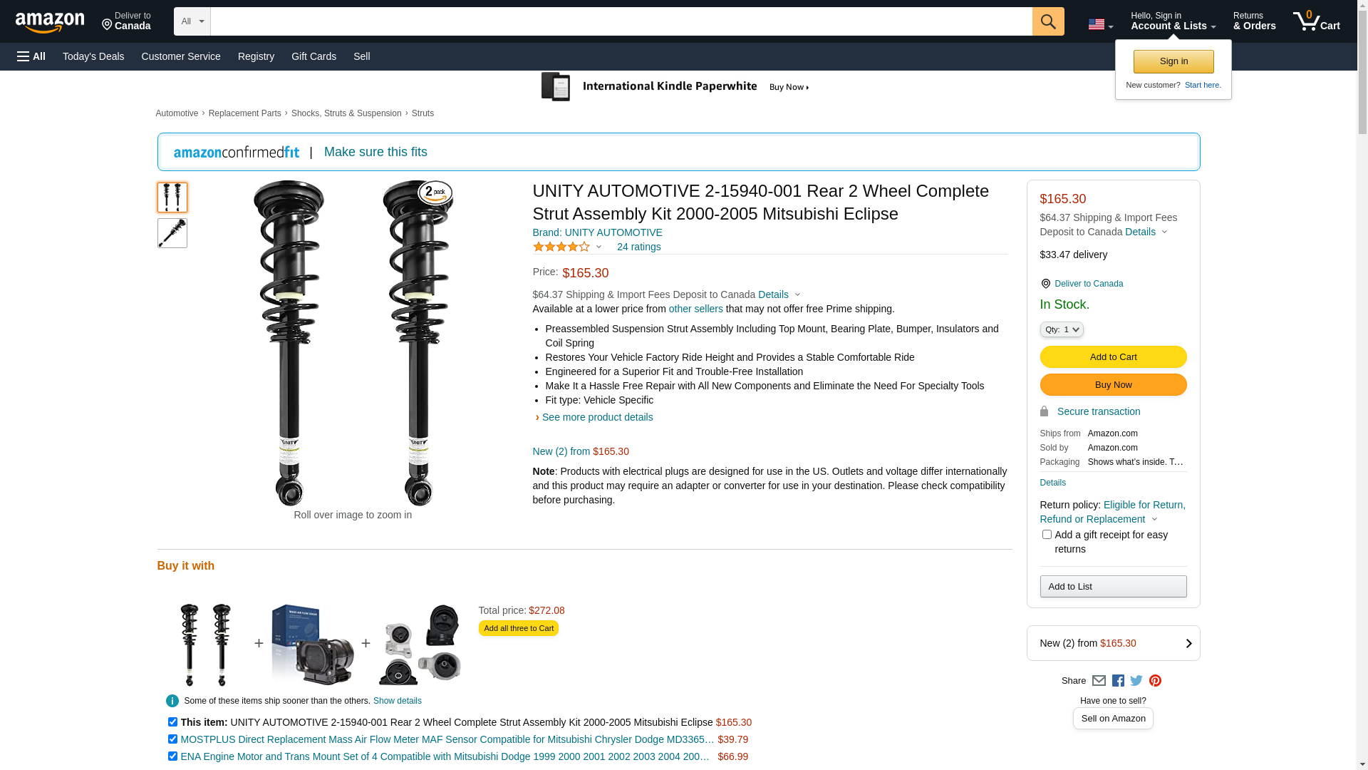 UNITY AUTOMOTIVE 2-15940-001 Rear 2 Wheel Complete Strut Assembly Kit 2000-2005 Mitsubishi Eclipse