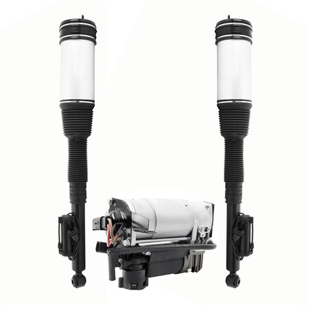 - Includes Both Rear Driver and Passenger Side Air Suspension Strut Assemblies and Remanufactured Air Suspension Compressor Pump