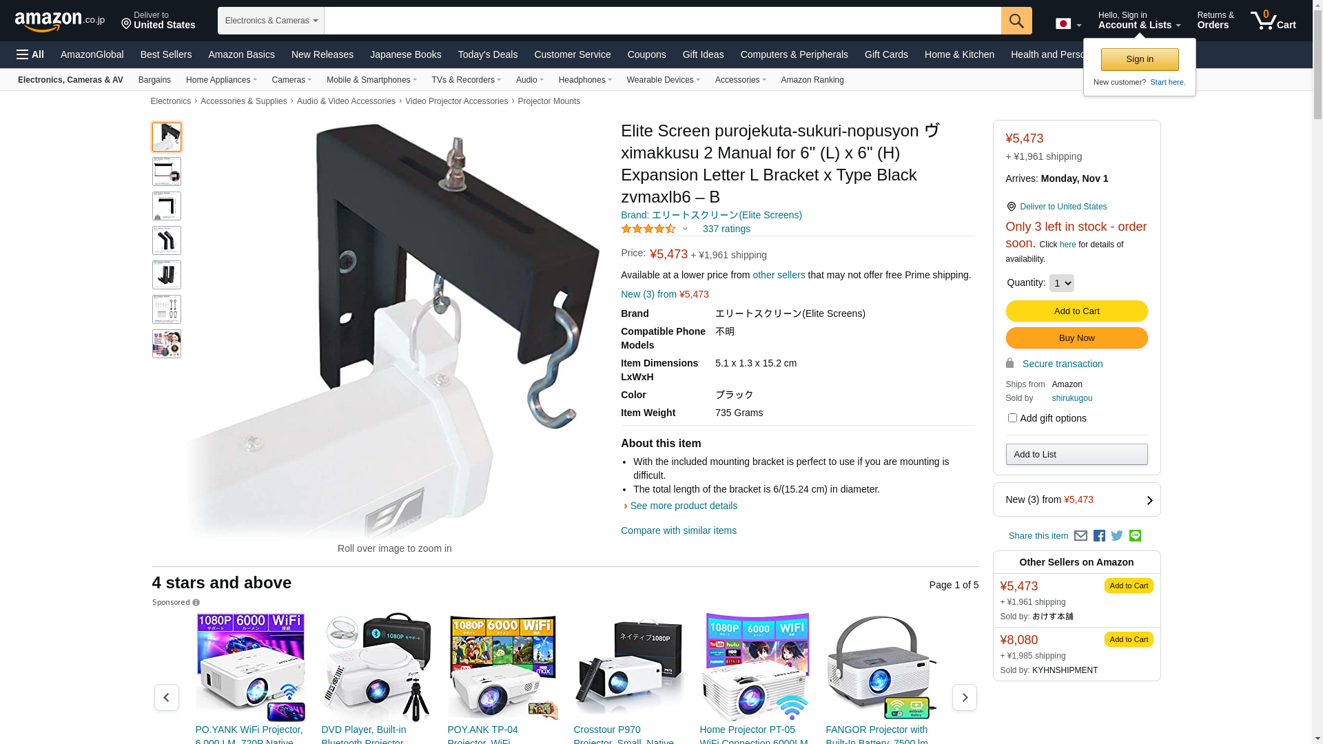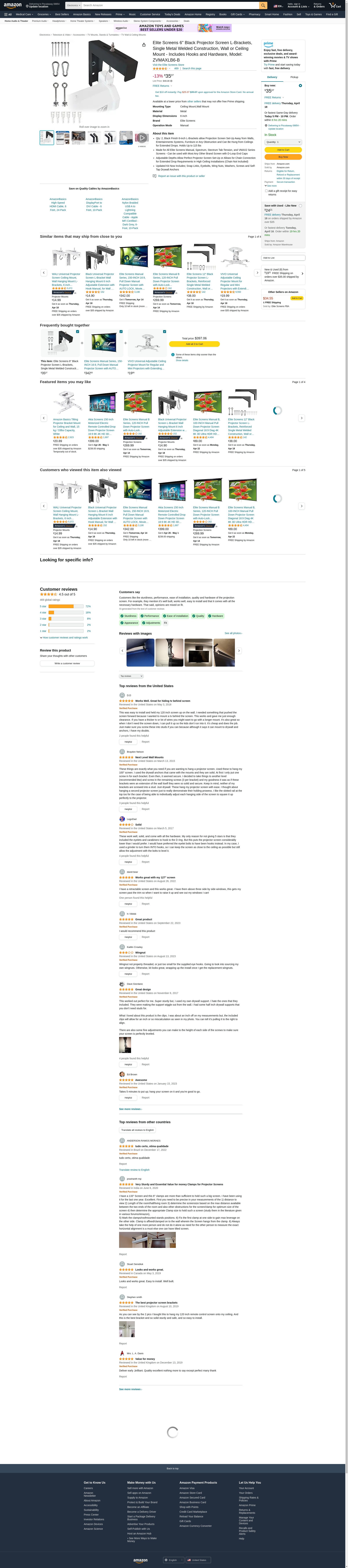 - Qty: 2, Black Finish 6-inch L-Brackets allow Projection Screen Set-Up Away from Walls, Entertainments Systems, Furniture or Any Obstruction and Can Be Hung from Ceilings for Extended Drops. Holds Up to 115 lbs