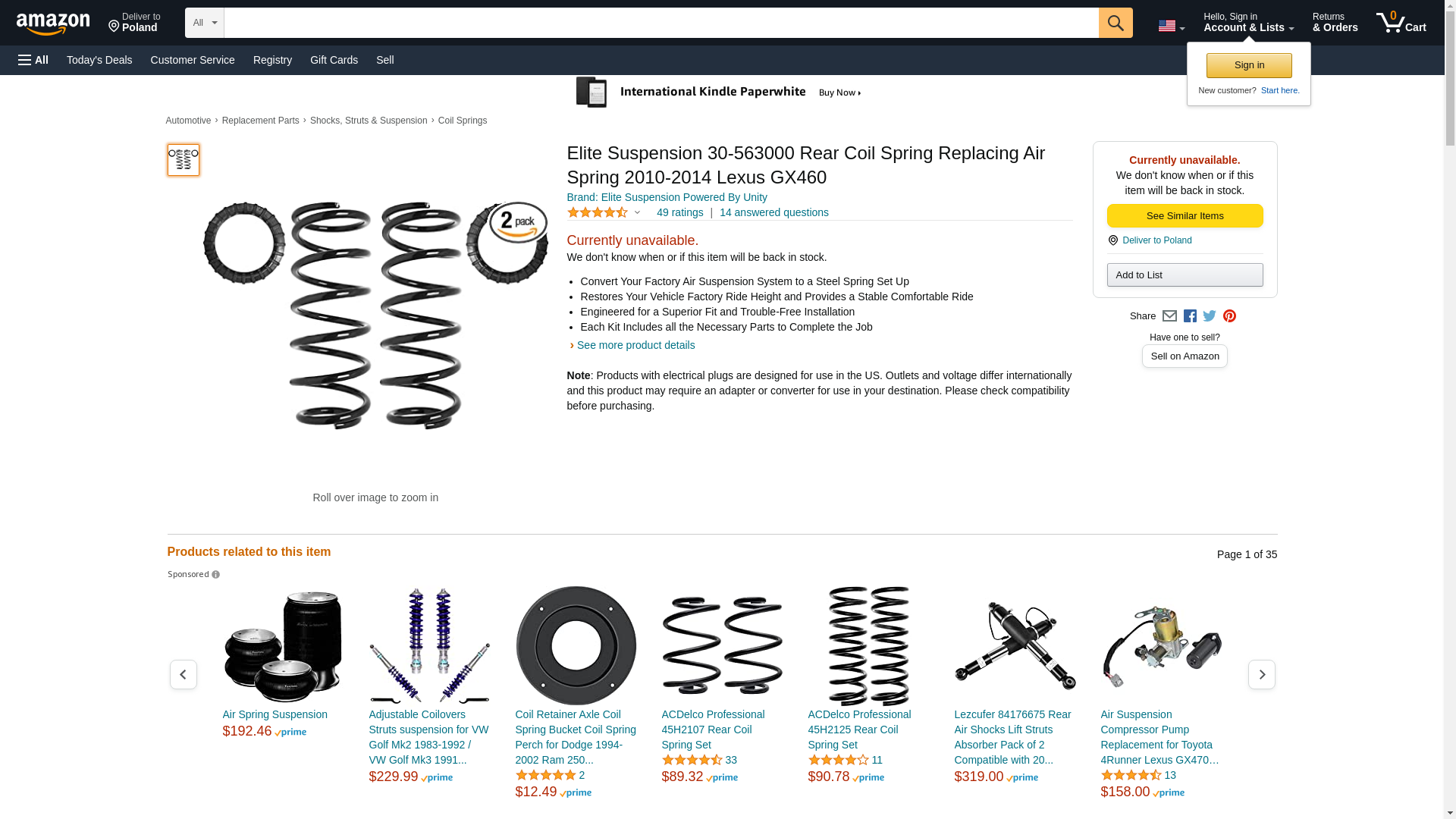 Elite Suspension 30-563000 Rear Coil Spring Replacing Air Spring 2010-2014 Lexus GX460