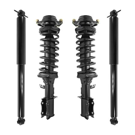 - Includes Both Front Driver and Passenger Side Complete Strut Assemblies and Rear Driver and Passenger Side Shock Absorbers