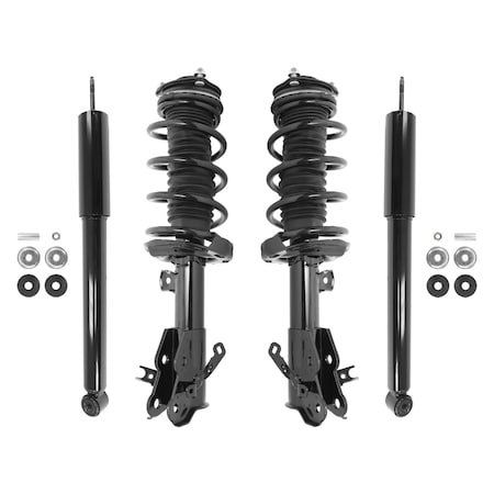 - Includes Both Front Driver and Passenger Side Complete Strut Assemblies and Rear Driver and Passenger Side Shock Absorbers