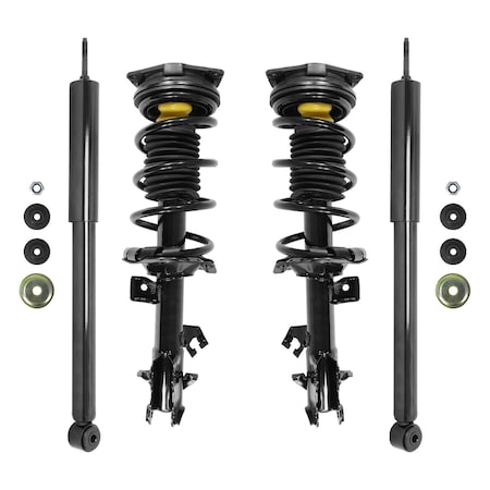 - Includes Both Front Driver and Passenger Side Complete Strut Assemblies and Rear Driver and Passenger Side Shock Absorbers