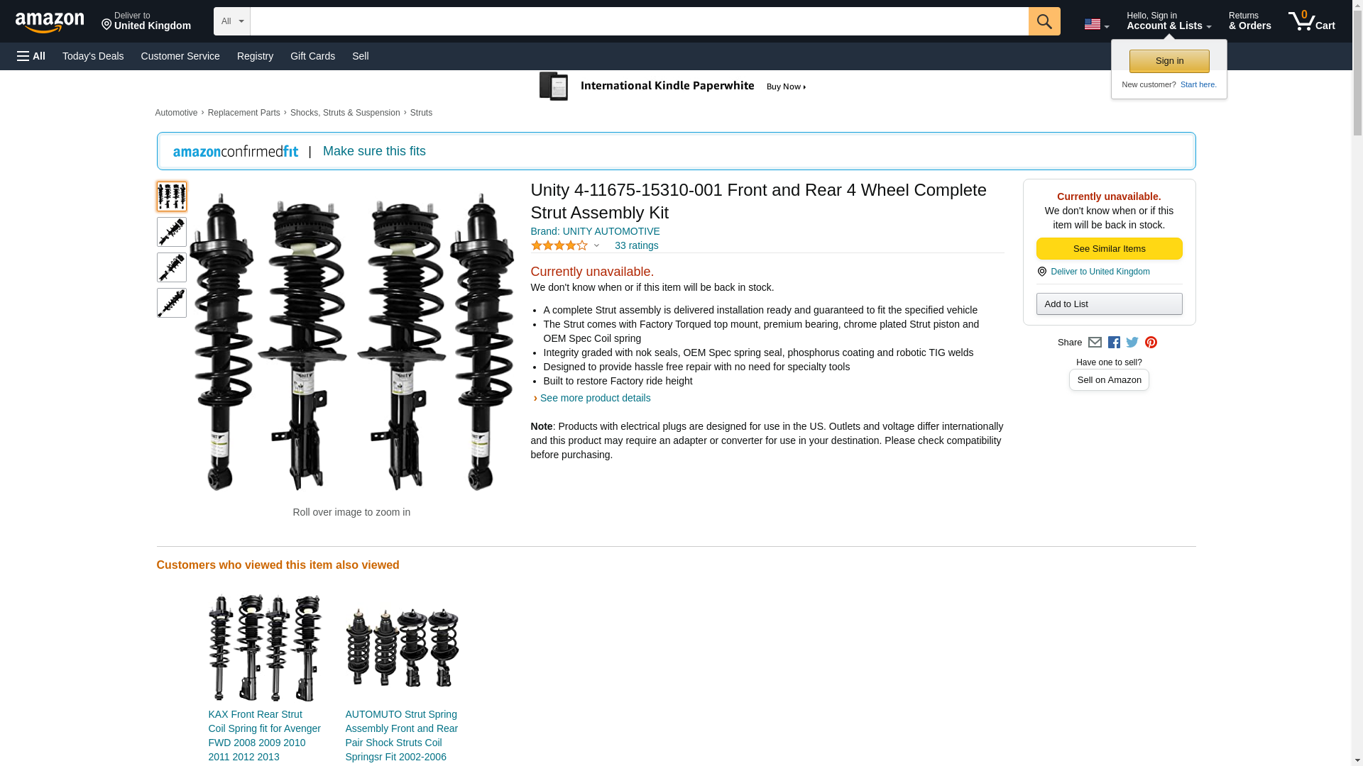 Unity 4-11675-15310-001 Front and Rear 4 Wheel Complete Strut Assembly Kit