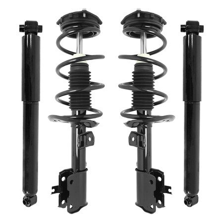 - Includes Both Front Driver and Passenger Side Complete Strut Assemblies and Rear Driver and Passenger Side Shock Absorbers