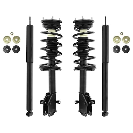 - Includes Both Front Driver and Passenger Side Complete Strut Assemblies and Rear Driver and Passenger Side Shock Absorbers