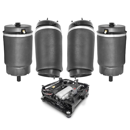 - Includes Both Front and Rear Driver and Passenger Side Suspension Air Springs with Air Suspension Compressor in Cage