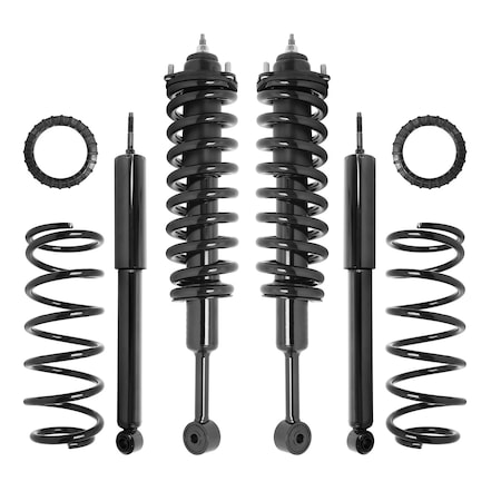 - Includes Both Front Driver and Passenger Side Complete Strut Assemblies and Rear Driver and Passenger Side Shock Absorbers and Coil Springs