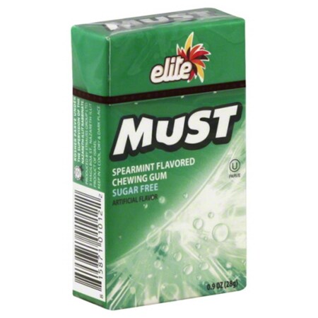Elite Must Chewing Gum Sugar Free Spearmint Flavored, 0.9 oz, (Pack of 16 )