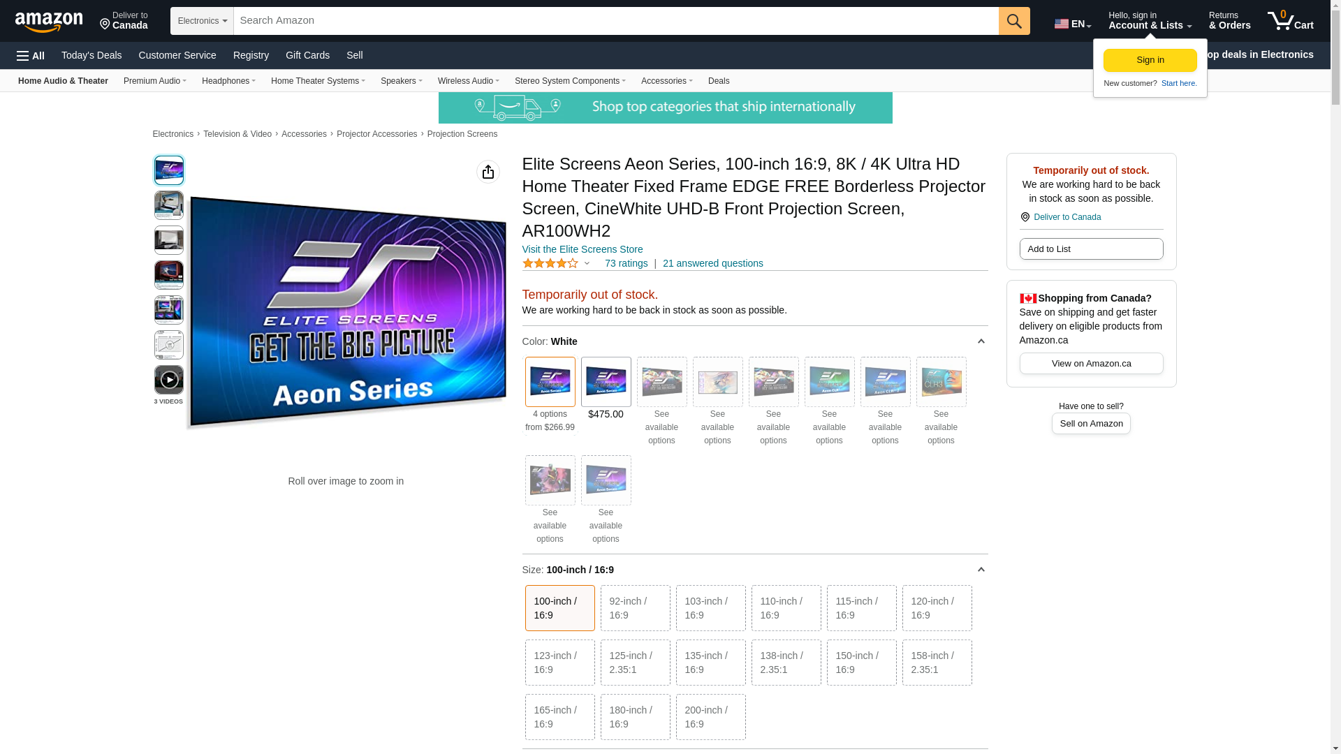 ELITE SCREENS AR100WH2 16:9 Aeon EDGE FREE Frame (100")
