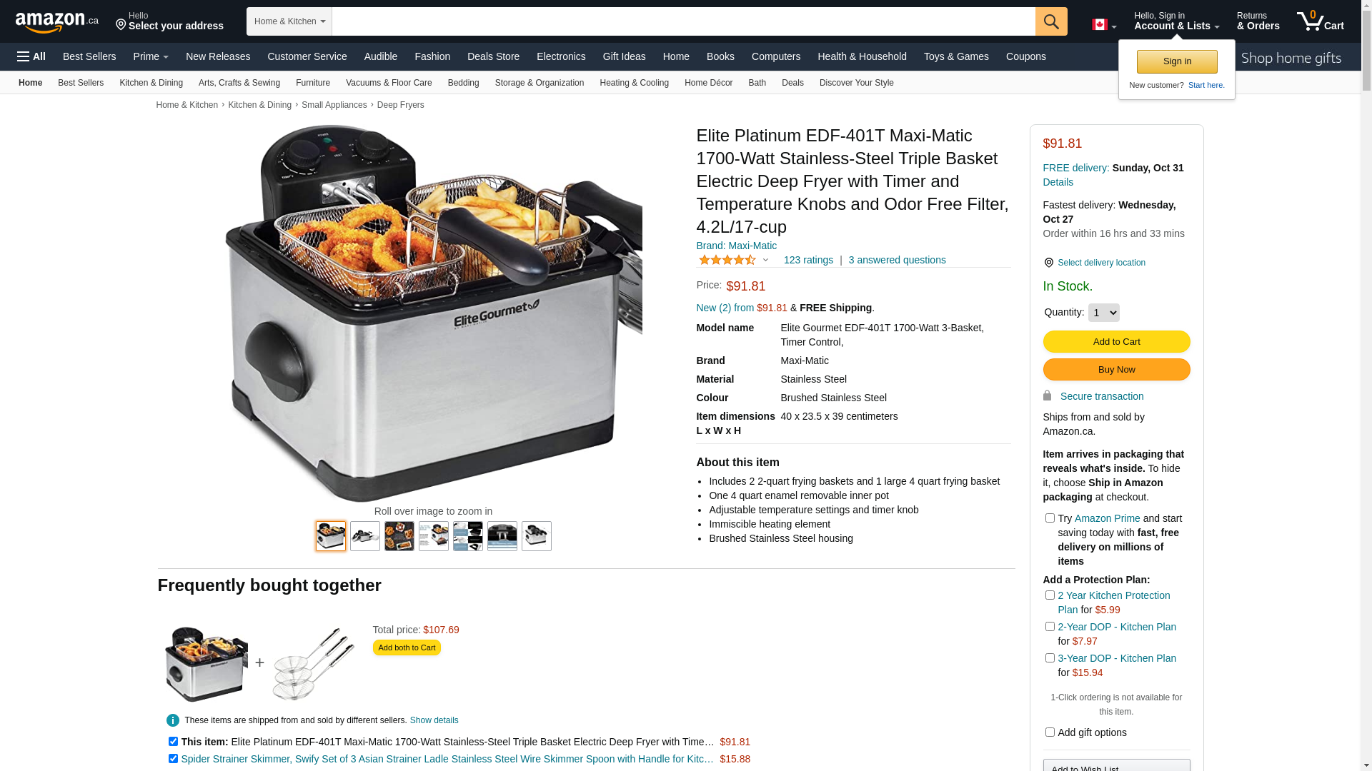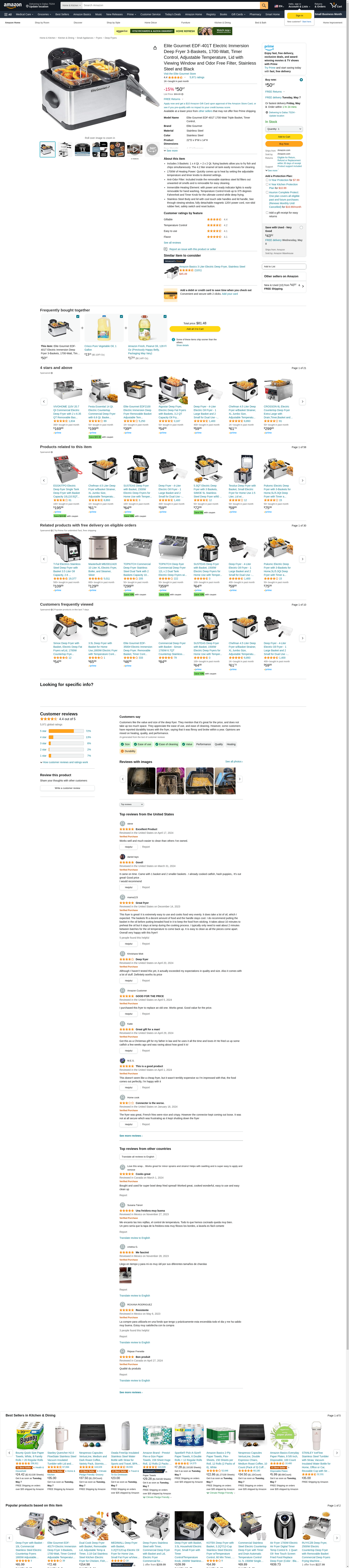 Elite Gourmet EDF-401T Electric Immersion Deep Fryer 3-Baskets, 1700-Watt, Timer Control, Adjustable Temperature, Lid with Viewing Window and Odor Free Filter, Stainless Steel and Black