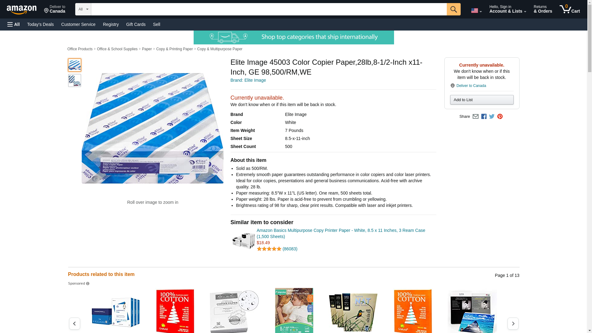 Elite Image 45003 Color Copier Paper,28lb,8-1/2-Inch x11-Inch , GE 98,500/RM,WE